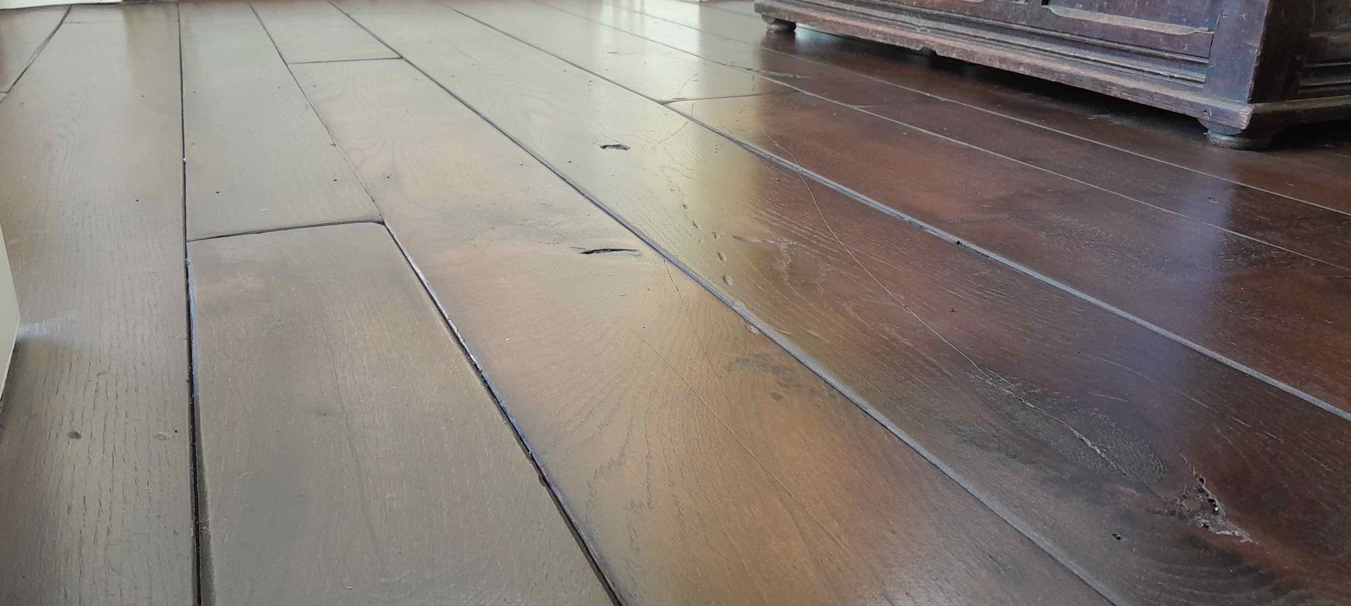 Once down the boards were hand sanded in places and then polished with several coats of a hard wearing floor wax to give the appearance of age.